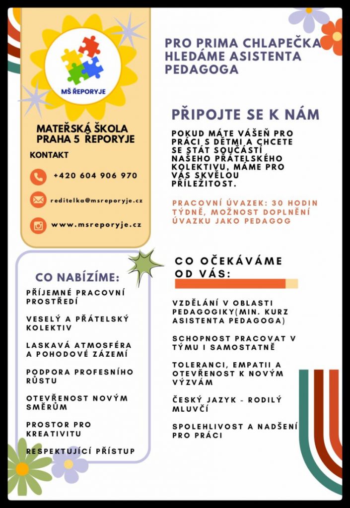 - Nástup od září 2024 do přátelského kolektivu naší mateřské školy.